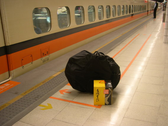 小桃紅搭高鐵自由座回家嚕,小桃紅裝了車袋,算行李吧!
