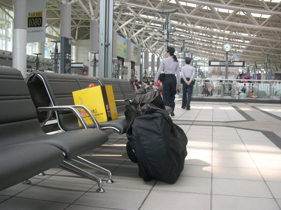 小桃紅被放在高鐵行李放置處,相形之下好像也沒多大嘛!